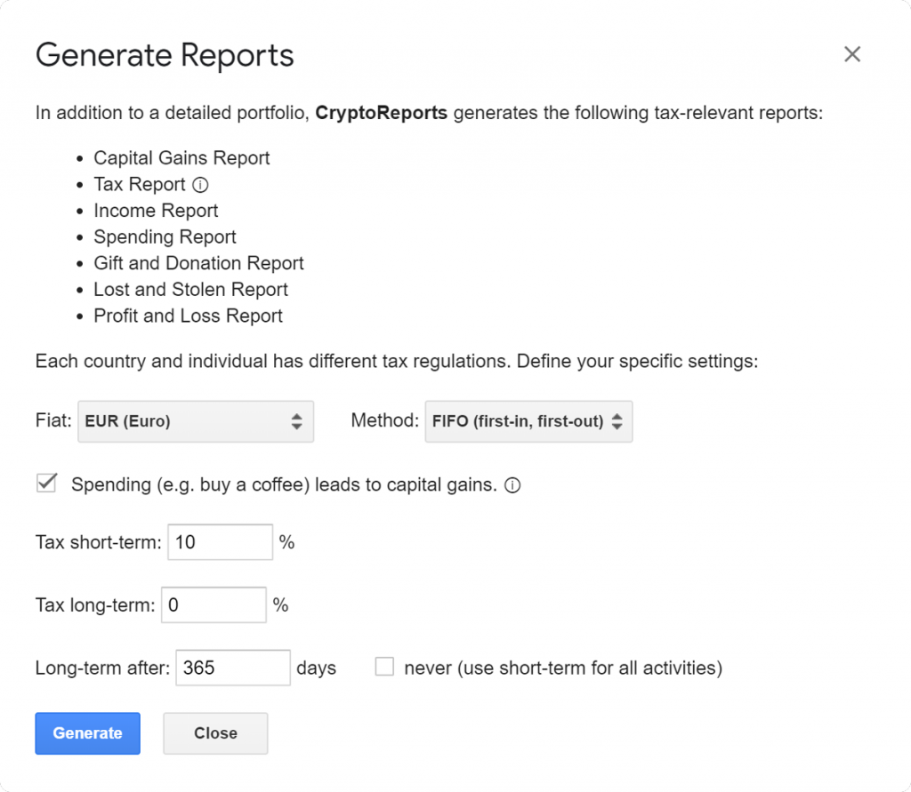 Crypto tax calculation is a comprehensive process. We tried to make it as easy as possible for you. If you still have questions or problems with CryptoReports, please contact our support team. We are glad to help you!